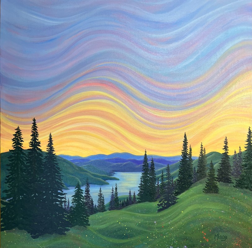 You may recognize the similarities between Twilight and Off the Beaten Path. I really enjoyed painting Off the Beaten Path following a weekend workshop on glazing with professional artist and teacher, Janice Robertson. I knew I wanted to paint this beautiful scene again but on a slightly larger scale with Twilight being the end result. Looking forward to hiking Cameron Ridge again when the flowers are in full bloom – maybe an overnight hike to enjoy the glow of twilight followed by a starlit sky.